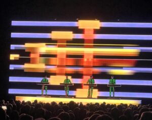 Pünktlich um 20:01 Uhr betrat die Band die Bühne. Keine großen Worte, keine Effekthascherei – einfach Kraftwerk, in ihrer ikonischen, fast schon musealen Präsenz. Bis 22:15 Uhr folgte ein Set, das so ziemlich alle Klassiker abdeckte, die man sich wünschen konnte: „Radioaktivität“, „Das Model“ und viele weitere Tracks, die elektronische Musik weltweit geprägt haben.